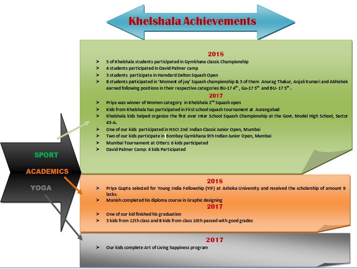 This quarter started with the good note to Khelshala as our student Priya Gupta got selected for Young India Fellowship of Ashoka University and all students are promoted to next class. .This year we have 5 students in class X and 6 in +2. All students have started preparing for their best results from the beginning. Our tutor has visited schools where our students are going and met the faculty members. She has got very good feedback about our students . We have got lots of queries for admission at Attawa. At Majra we have started with nutrition and our teachers have made visits to neighboring villages to get more students to attend Four students have attended David Palmar camp also. Sonu, Anurag, and Abhishek did very well in Squash tournament.